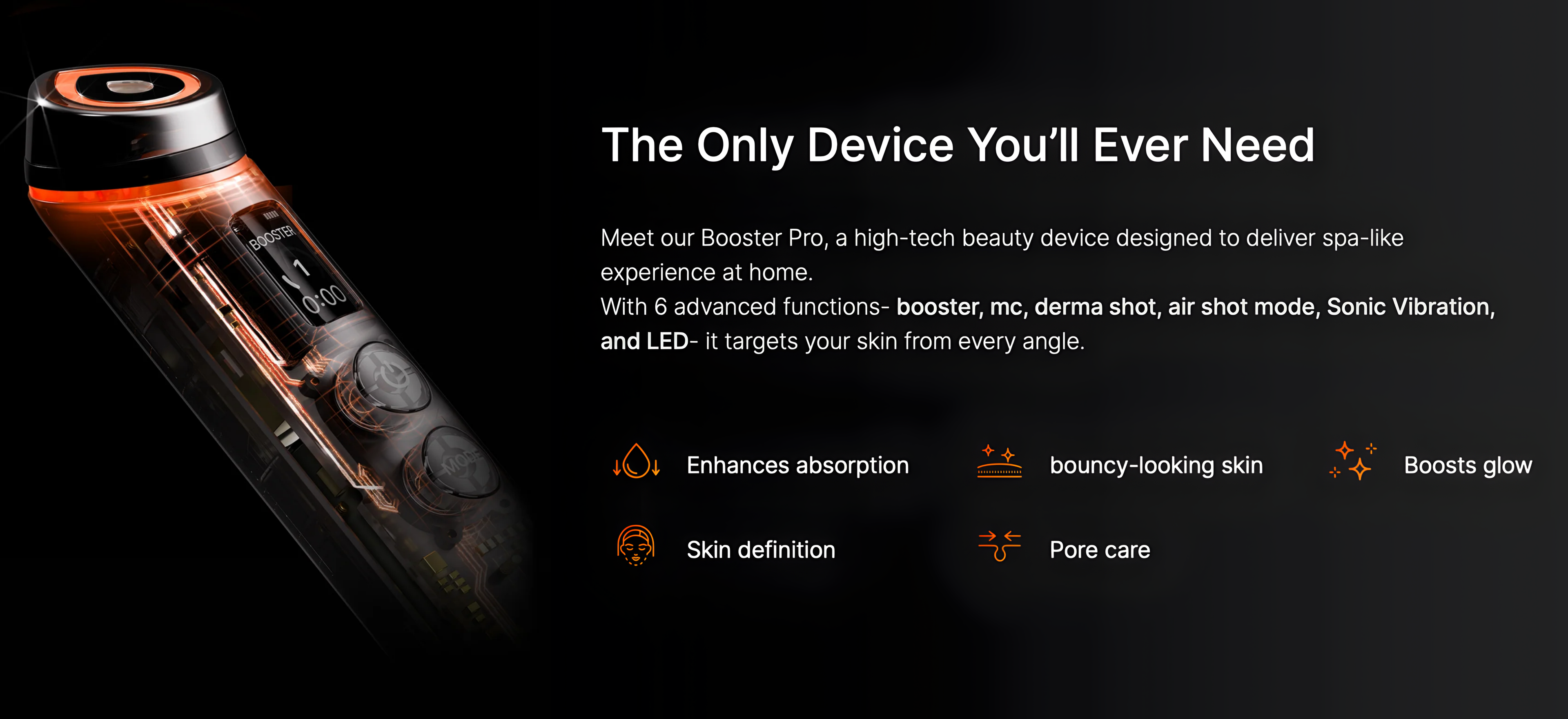 The Booster Pro uses EMS (Electrical Muscle Stimulation) and LED technology to help improve skin firmness and enhance ingredient absorption.